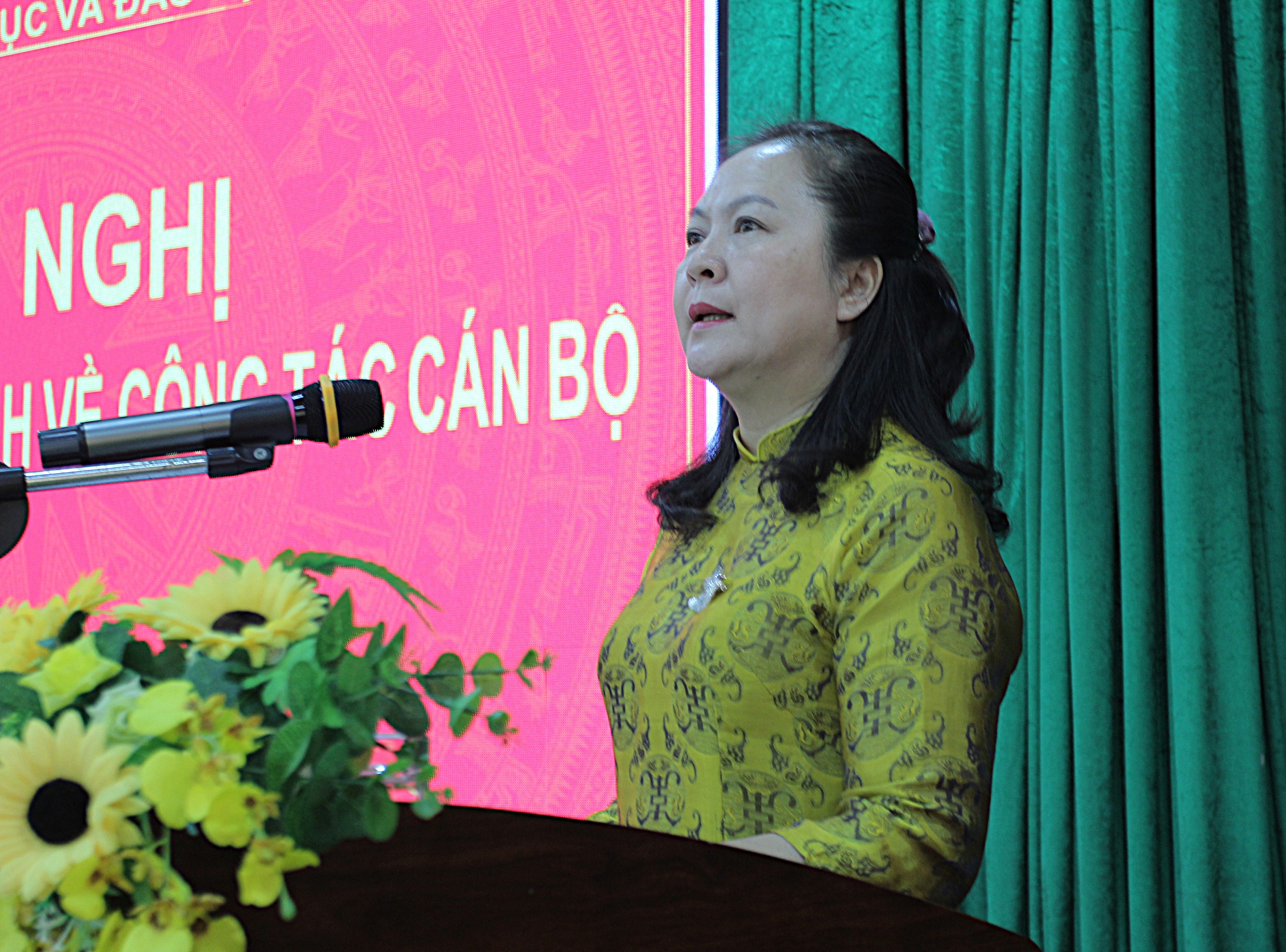 Bà Lê Thị Thanh Xuân, tỉnh ủy viên, Giám đốc Sở GDĐT phát biểu tại Hội nghị